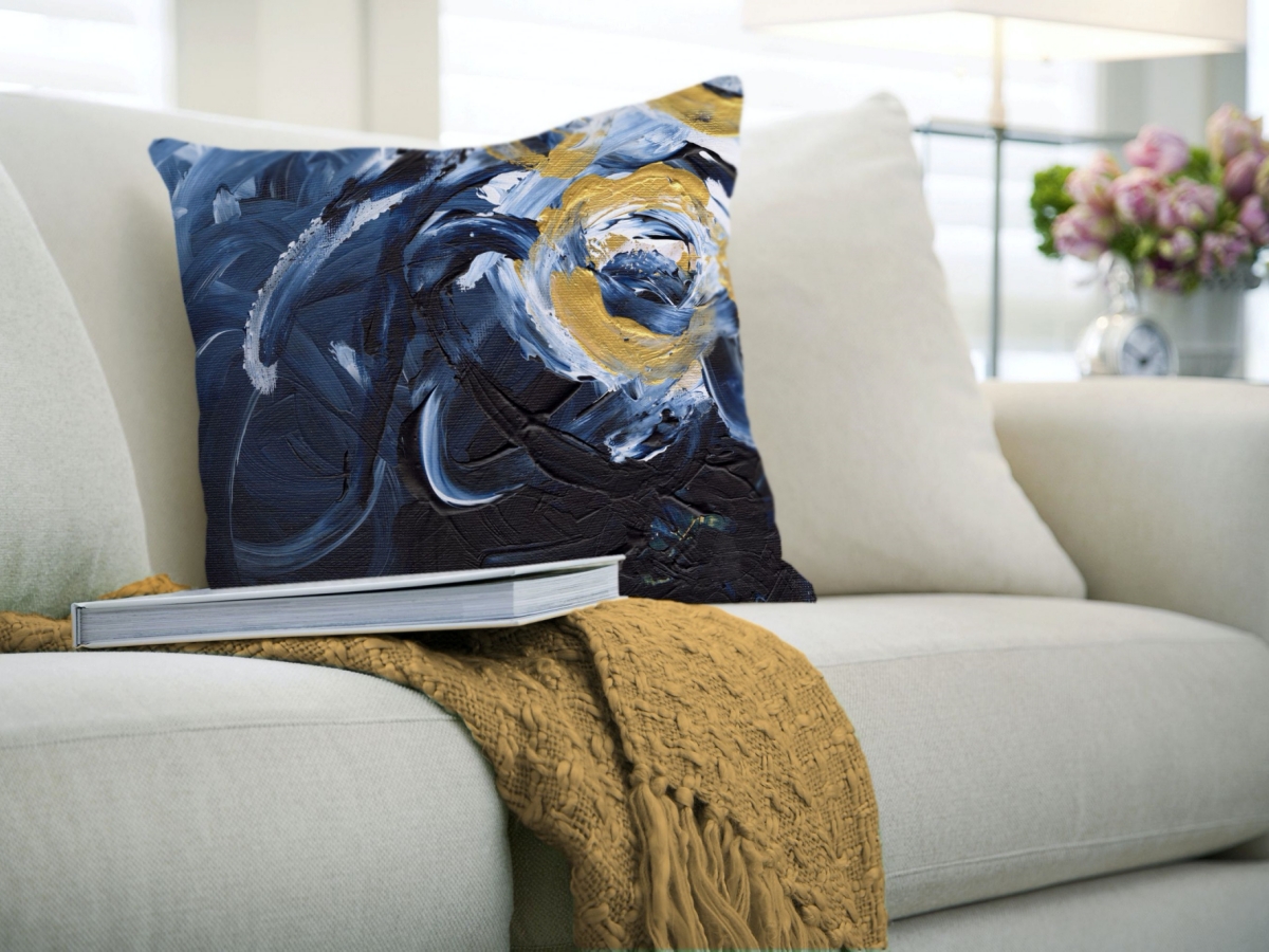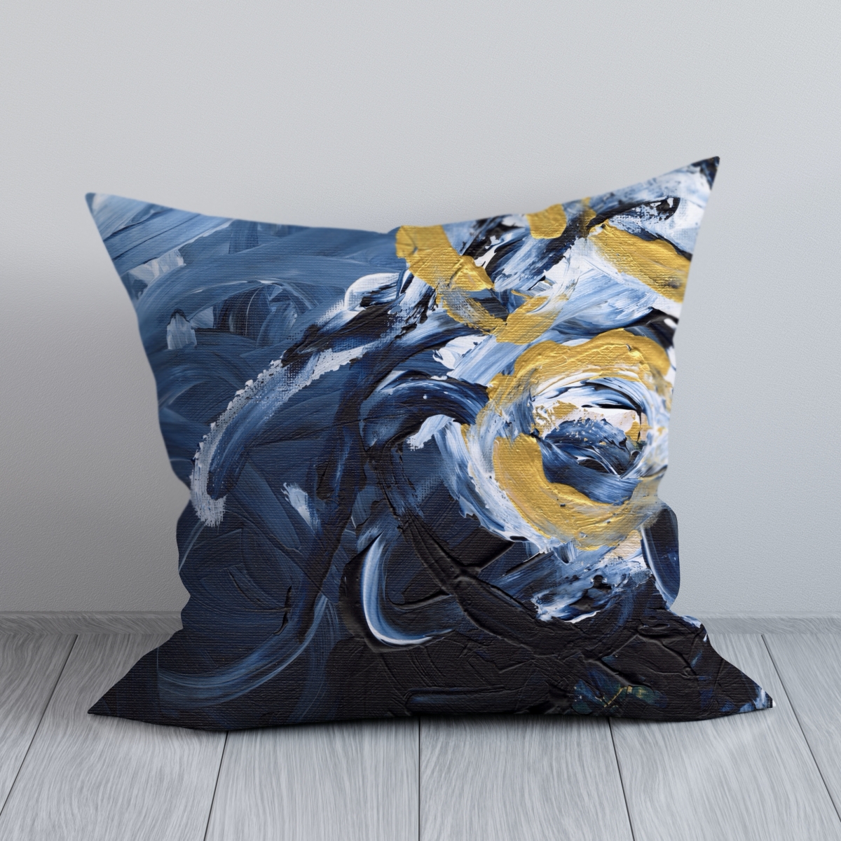 Wzory na poszewkach są reprodukcją oryginalnych dzieł. Obraz namalowała Monika Piecuch, właścicielka marki Foormat, malarka i projektantka wnętrz, absolwentka ASP w Łodzi.