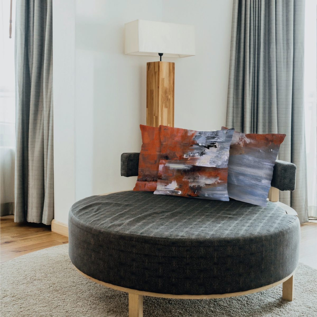 Wzory na poszewkach są reprodukcją oryginalnych dzieł. Obraz namalowała Monika Piecuch, właścicielka marki Foormat, malarka i projektantka wnętrz, absolwentka ASP w Łodzi.
