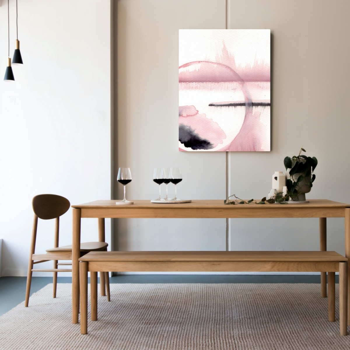 Wydruki na płótnie są reprodukcją oryginalnych obrazów. Obraz namalowała Monika Piecuch, właścicielka marki Foormat, malarka i projektantka wnętrz, absolwentka ASP w Łodzi.