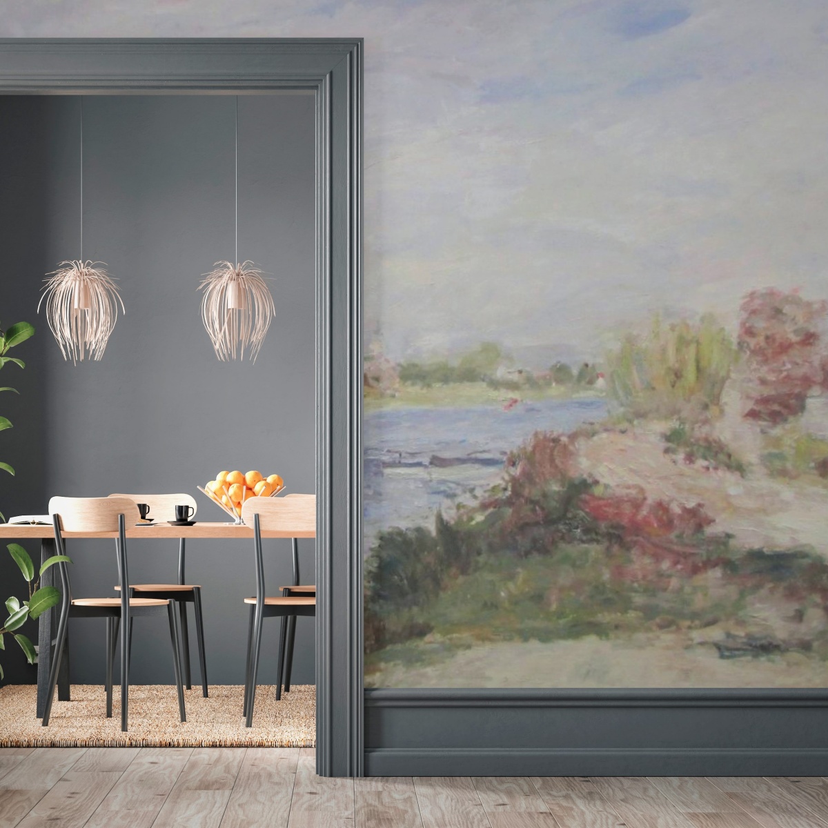 Tapety są reprodukcją oryginalnych obrazów. Obraz jest reprodukcją dzieła "Seine at Argenteuil" autorstwa Pierre-Auguste Renoir'a, namalował go Piotr Kucharski, profesor i wykładowca na ASP w Łodzi.