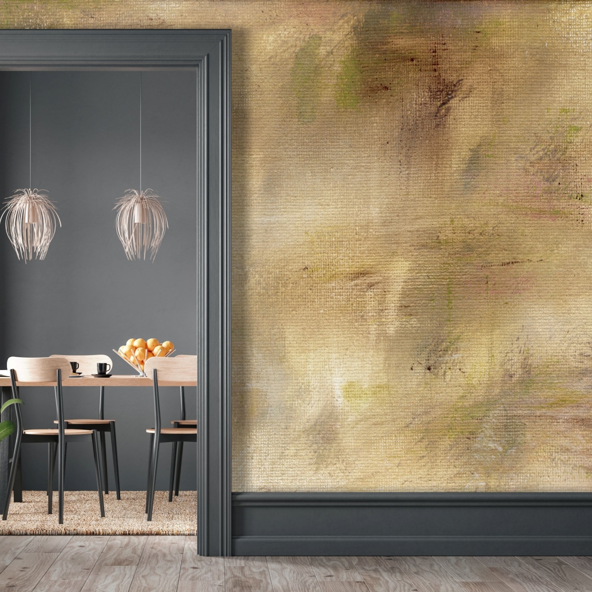 Tapety są reprodukcją oryginalnych dzieł. Obraz namalowała Monika Piecuch, właścicielka marki Foormat, malarka i projektantka wnętrz, absolwentka ASP w Łodzi.