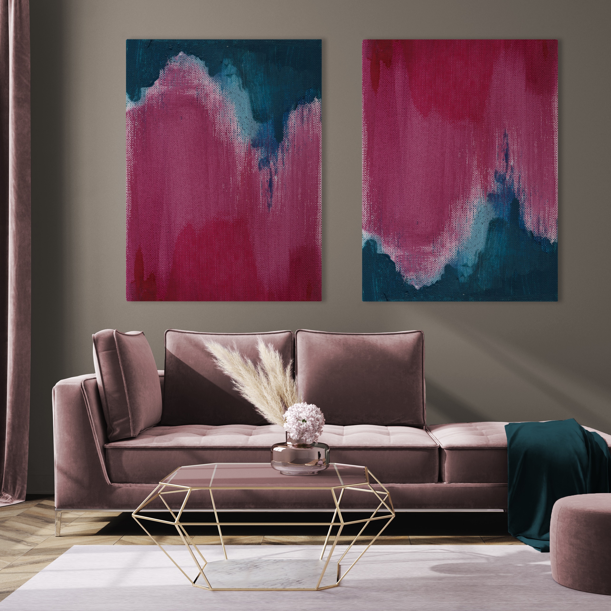 Wydruki na płótnie są reprodukcją oryginalnych obrazów. Obraz namalowała Justyna Cieślik, malarka, kostiumografka oraz wykładowczyni na ASP w Łodzi.